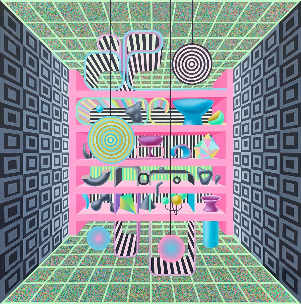 Featuring 30-plus oil-on-wood panels, Dimensions celebrates the ambiguity of Treadwell’s painting practice, which immerses viewers in worlds that exploit the logical tensions between two- and three-dimensional spaces. Pairing optical illusions with abstraction, Treadwell’s paintings are portals to colorful, futuristic worlds that blend three-dimensionality with geometric abstraction. Dimensions traces the development of these themes over the last decade, culminating in Treadwell’s newest body of paintings, which depict imaginary sculptures inhabiting fantastical gallery spaces.